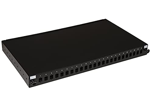 LINK LK24FON Panneau Fibre Optique 19" avec 24 Ports SC simplex ou LC Duplex Profondeur 250 mm Noir avec Accessoires pour Armoire Rack en métal résistant Dimensions 43 x 25 x 4 cm 1 unité