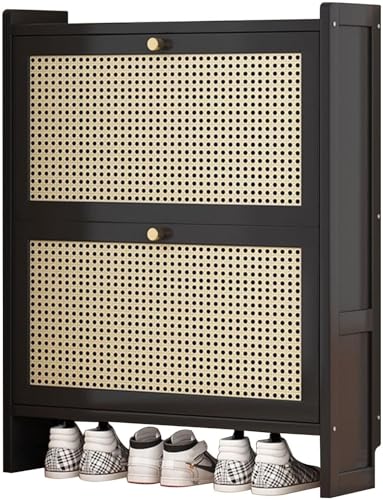 Armoire à Chaussures en Rotin pour L’entrée, Organisateur De Porte-Chaussures De Rangement Mince, Armoire De Rangement à Chaussures étroite, Armoire De Rangement, Black, 87 * 70 * 17CM