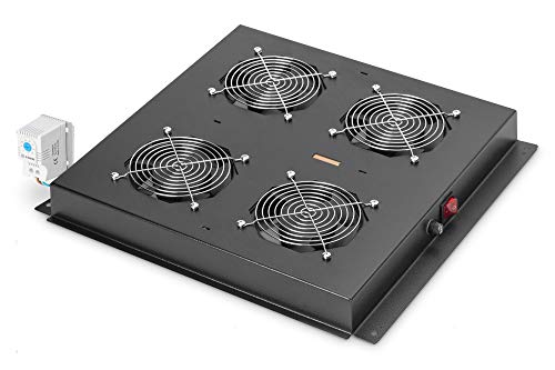 DIGITUS Ventilateur de toit pour armoire réseau (Dynamic Basic / Unique) et armoire serveur (Dynamic Basic), ventilateur 4x, thermostat, noir (RAL 9005)