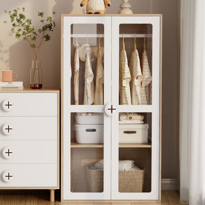 Armoire double style scandinave chambre à coucher - HUCOCO - 90x50x180 - 2 portes - Dressing - Chêne