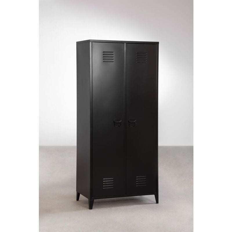 Sklum – Armoire de casier en acier noir 137x38.3x38cm – 2 étagères intérieures – Porte en métal avec clé – Style industriel
