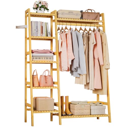 Porte-manteaux en bambou ouvert - Rangement à vêtements avec tringle à vêtements - Armoire autoportante - Étagère solide - Étagère en bambou - Séchoir à linge pour couloir