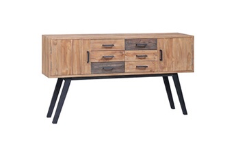 Teck Solide Armoire Latérale Buffet Armoire de Rangement avec 6 Tiroirs et 2 Portes Salon Chambre à Coucher Intérieur 110x30x75 cm