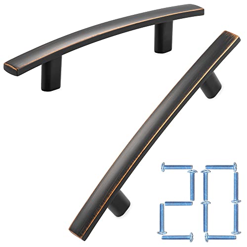KOOFIZO Lot de 20 poignées d'armoire à barre incurvée solide en bronze huilé, trou de vis central de 76 mm pour porte de placard de cuisine, commode de chambre à coucher, armoire de salle de bain