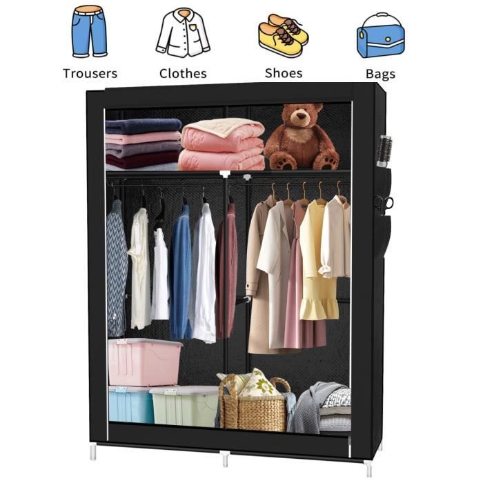 Armoire en Tissu Solide MENGDA - Chambre - Noir - 2 portes - 200 cm - 60 cm