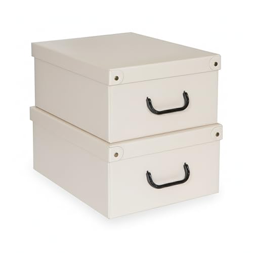 Lot de 2 Boîtes de Rangement Beige 32×42×17,5 cm – Carton Solide, Made in Italy, Élégantes et Pratiques – Design Italien, Faciles à Monter, avec Poignées, Idéales pour Armoire et Maison