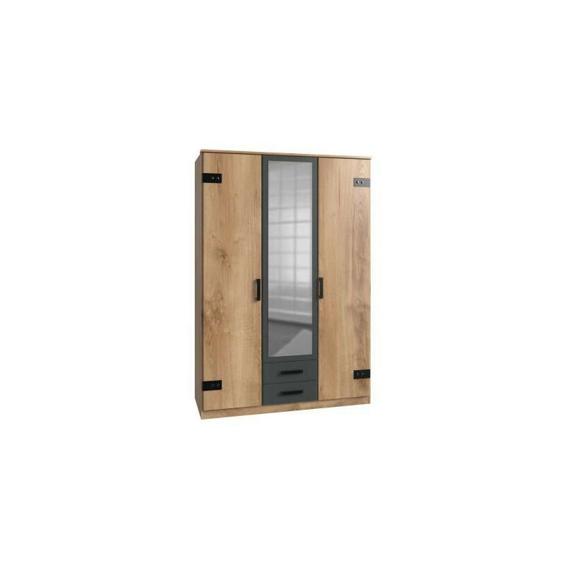 New Mexico Armoire 3 portes avec une porte miroir, 2 portes lambrissées et 3 tiroirs, en blanc ciré.