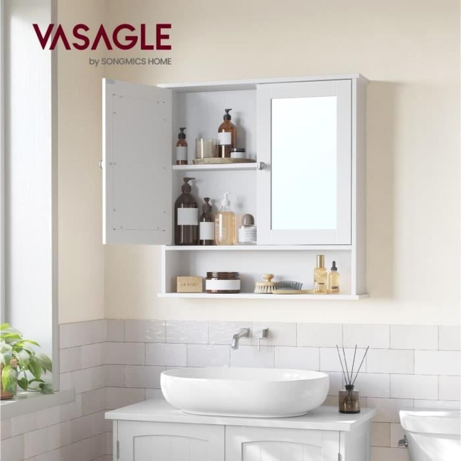 Armoire Murale Salle de Bain - VASAGLE - LED - Anti-buée - Miroir Grossissant - Blanc - 50x165x60 cm