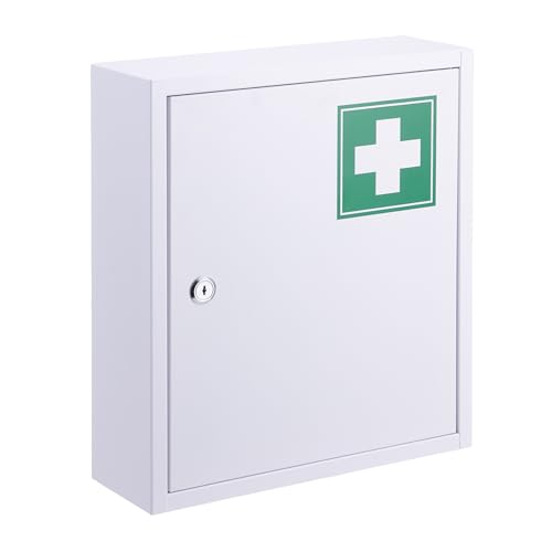 Relaxdays Armoire à Pharmacie, verrouillable, 2 Niveaux, Acier, HxLxP: 32x21,5x8 cm, pour médicaments, accrocher, Blanc