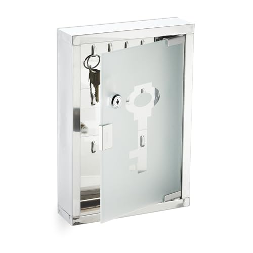 Relaxdays Armoire à clés verrouillable, Rangement Mural, Porte vitrée, en Acier Inoxydable, HxLxP : 32x22x6 cm, argenté