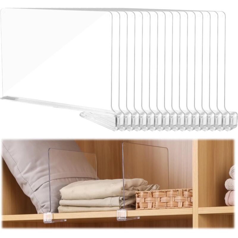 Jalleria - 16 Pièces Separateur Etagere Acrylique, Organisateur Armoire Vetement, séparateurs d'étagères, Détagère en Acrylique Transparent pour Le