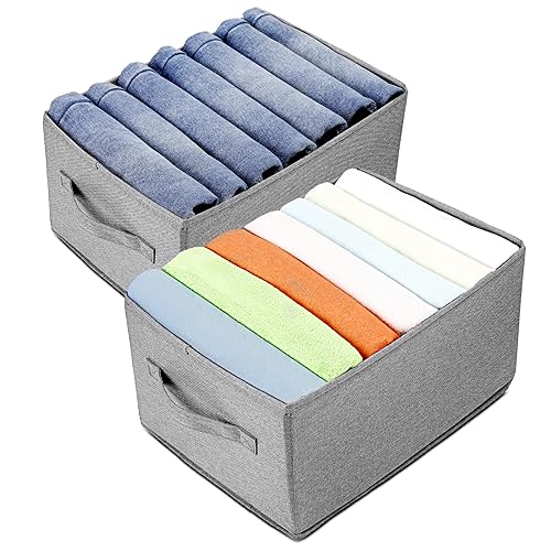 GRANNY SAYS Organisateurs Armoire Vetement, Lot de 2 Boites de Rangement Tissu, Organisateur Armoire Rangement pour Tee Shirt Pantalon, Rangement pour Vêtements et Penderies, Boîte Rangement Gris