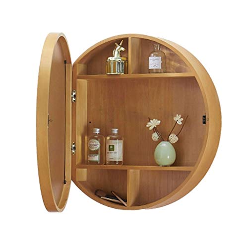 Armoires de Toilette Miroir de Salle de Bain avec étagère Toilette Maquillage Dressing Miroir de Salle de Bain Rond Tenture Murale (Color : Yellow, Size : 60 * 60 * 13cm)