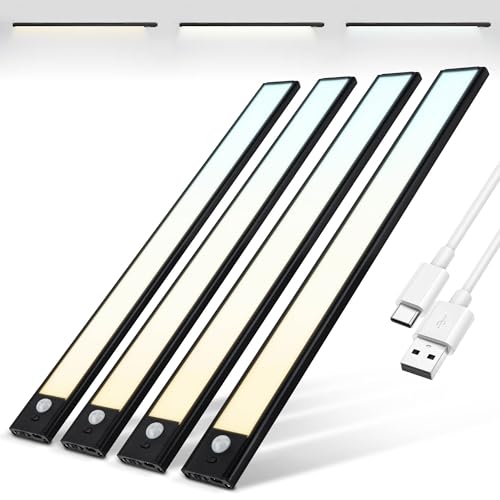 Brendz Led Armoire Detecteur Mouvement, Reglette Rechargeable USB-C, 3 Températures de Couleur, Led Dressing, Lampe de Placard, Dimmables, Bande Magnétique pour Armoires, Couloirs, 4 x 40cm