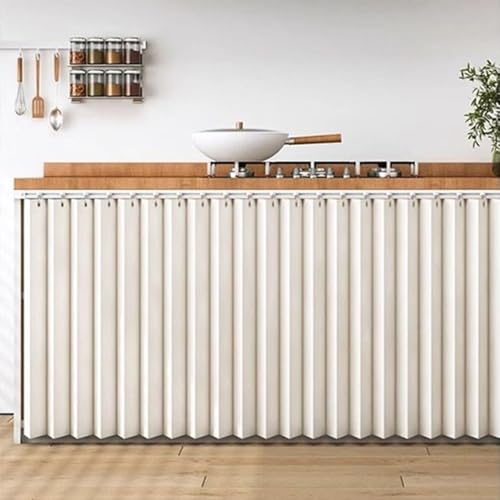GSKFXJ Rideau D'Étagère De Cuisine D'ombrage Rideaux D'armoires De sous Evier Anti-Poussière, Rideau Armoire Dressing Accordéon Rideaux D'armoire À Chaussures(Beige,Cabinet 70x50cm)