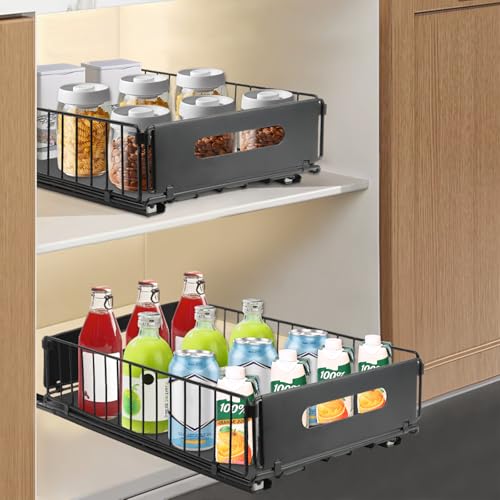 Tiroir Coulissant Cuisine, Organisateur D'Armoires De Cuisine, Organisateur de Tiroirs pas Besoin de Percer Panier Coulissant Cuisine pour Rangement Cuisine Dressing, 24.5x37.5x10CM