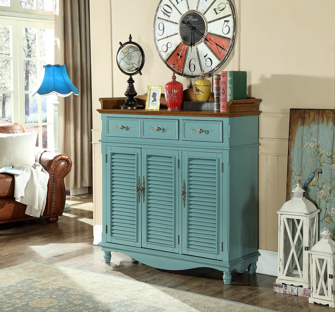 Commodes en bois véritable Bleu Armoires Sideboard Étagère Commode Dressing Nouveau
