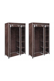 Lot de 2 armoires étagères penderie dressing tissu marron entrée chambre camping bre camping