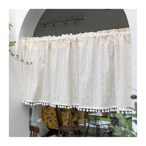 QAUUCP Rideaux d'armoires de Cuisine Rideau de café brodé Fleurs ajourées, Simple et Exquis, Court en Tissu Blanc élégant for Armoire Cuisine(W200 x H50cm 1Piece)