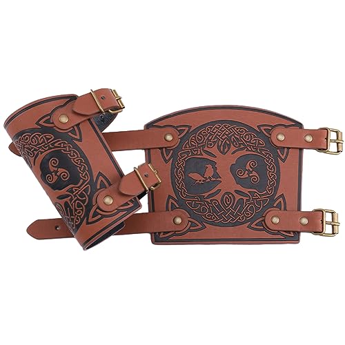 GORGECRAFT 2PCS Bretelles de Bras en Cuir Gaufré Arbre du Monde Bracelet de Gantelet en Cuir Viking Brassards de Bras D'Armure de Chevalier Brassards à Boucle de Tir à l'arc pour Halloween Jeux