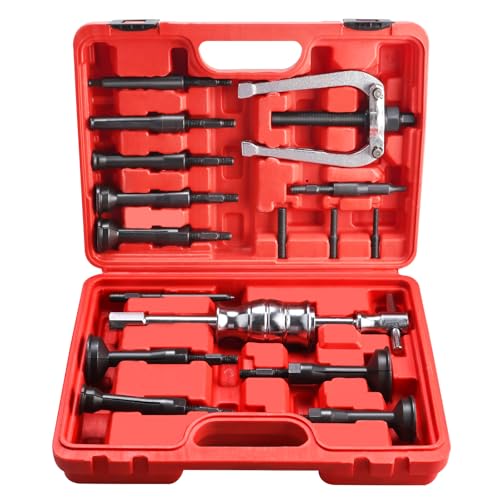 FreeTec 16 pièces Kit Extracteur Roulement Interieur, 8mm-58mm Arrache Roulement Interieur, Outil d'Extraction de Roulement de Trou Borgne avec Marteau Coulissant pour Voiture Camion Moto, Rouge