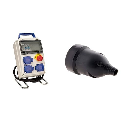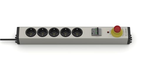 EHMANN 0873x00052035 Multiprise en Aluminium 5 Prises avec Interrupteur FI intégré 30 mA, disjoncteur 16 A et arrêt d'urgence, câble d'alimentation de 5 m