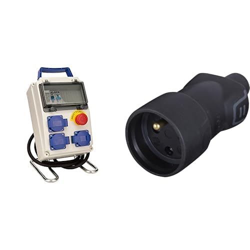Brennenstuhl Coffret de Chantier BD 4M/16/AU, avec 4 Prises à clapet et 2m de câble (IP44, disjoncteur différentiel, Bouton d'arrêt d'urgence) 1154911 Gris