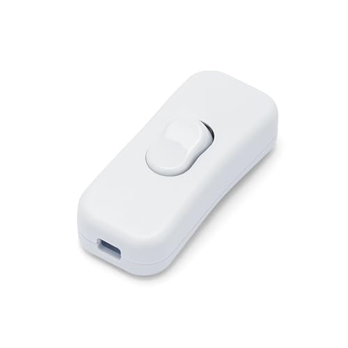Velamp LH126W Cordon en Ligne, Interrupteur à Bascule de Commande Marche/arrêt unipolaire 250 V 2 A. Idéal Table, Chambre, Lampe de Bureau, Blanc