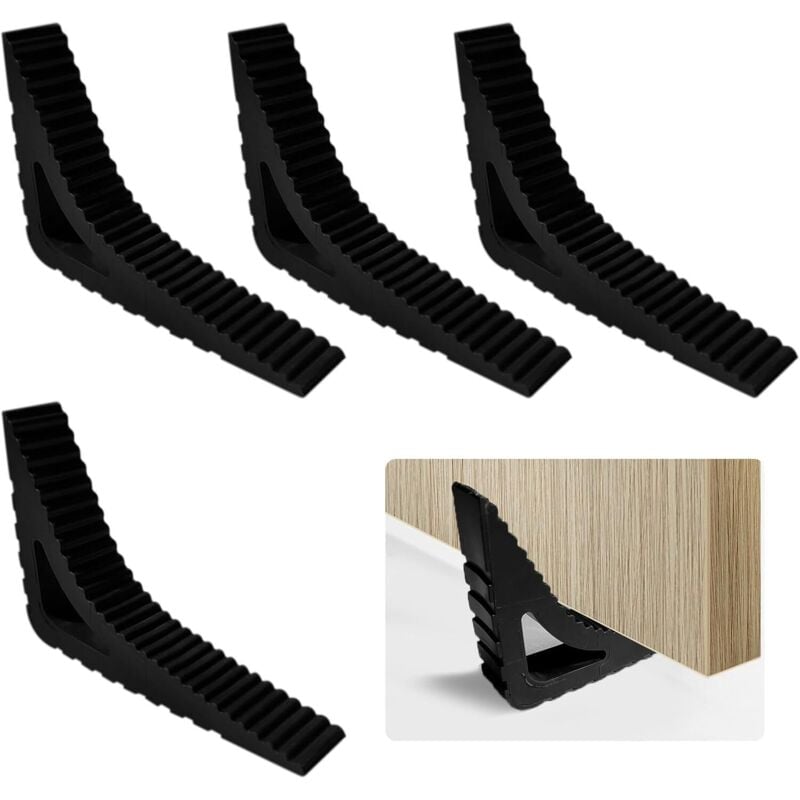 4 pièces Noir Cale Porte Caoutchouc Souple Antidérapante Bloc Hauteur Réglable Arrêt de Porte Pour Genre Carrelage, Sol,Béton, Ciment,Tapis