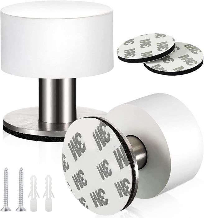 2Pcs Arret de Porte Sol Butoir Porte Acier Inoxydable Butée de Porte Adhésive Arrêt de Porte à Double Usage avec AmortisseurBlanc