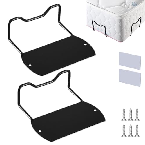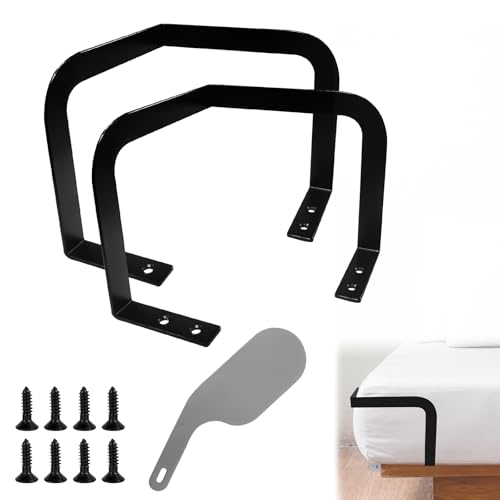 Zykra 4 Pièces Arret Matelas Antidérapants Noir, Métal Supports de Matelas Robuste Arrêt Latéral Matela Stabilisateurs de Matela pour Panneaux de Lit Pleins, Cadres de Lit en Bois
