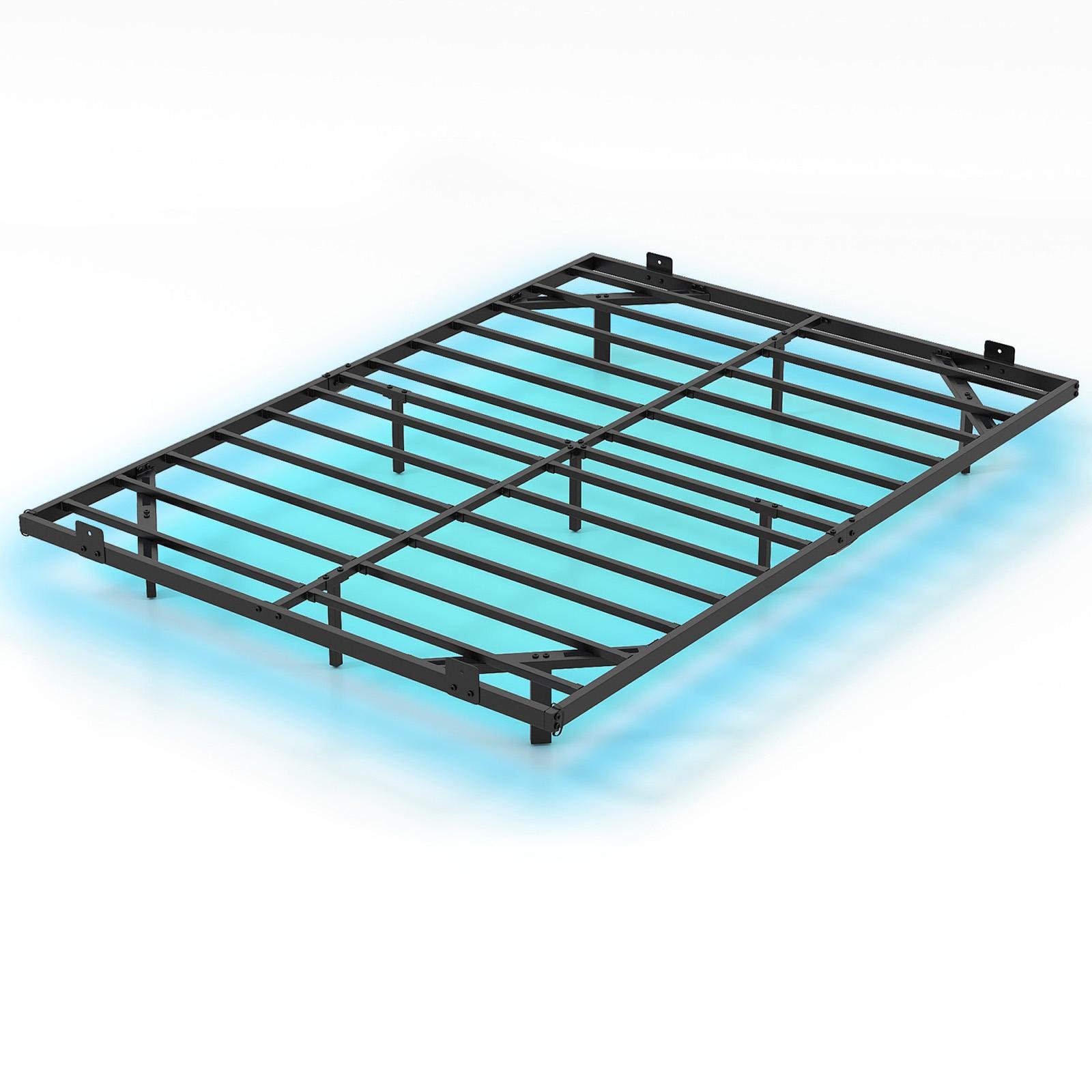 COSTWAY Cadre de lit métallique, Lit double avec LED, télécommande & arrêt de sécurité du matelas, Cadre de lit flottant Sommier à lattes 200x160x24cm Seulement cadre de lit