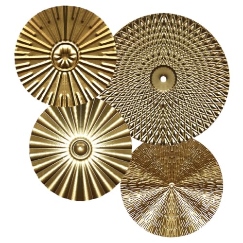OSALADI Ensemble de 4 Décorations Murales Métal Doré, Disques Irréguliers Modernes, Fixation Murale Artisanale pour Salon, Bureau et Maison, Art Mural Rond Design Contemporain