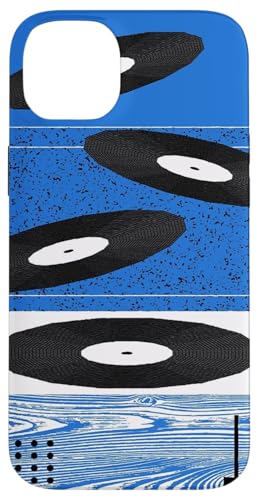 Disques vinyles flottants rétro Bleu Minimaliste Art Coque pour iPhone 15 Plus