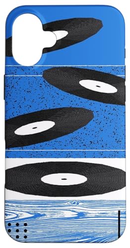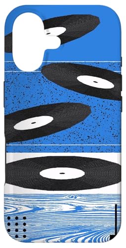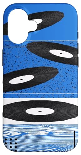Disques vinyles flottants rétro Bleu Minimaliste Art Coque pour iPhone 16