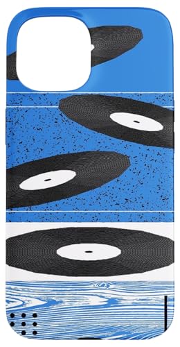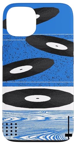 Disques vinyles flottants rétro Bleu Minimaliste Art Coque pour iPhone 15