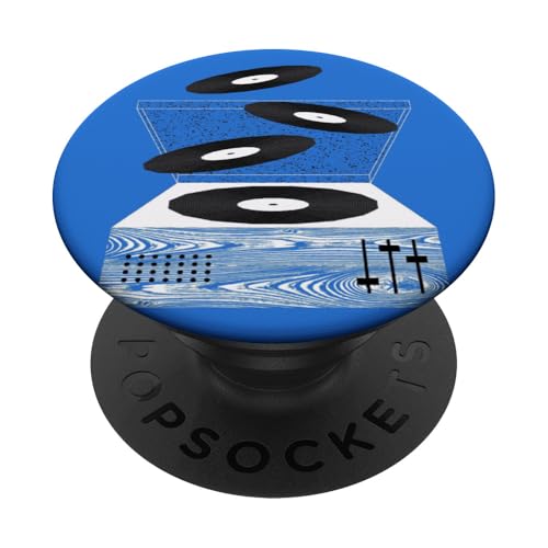 Disques vinyles flottants rétro Bleu Minimaliste Art PopSockets PopGrip Adhésif