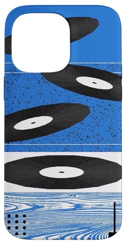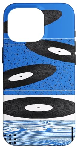 Disques vinyles flottants rétro Bleu Minimaliste Art Coque pour iPhone 16 Pro Max