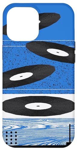 Disques vinyles flottants rétro Bleu Minimaliste Art Coque pour iPhone 13 Pro Max