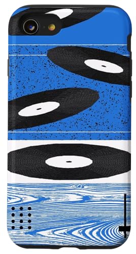 Disques vinyles flottants rétro Bleu Minimaliste Art Coque pour iPhone SE (2020) / 7/8