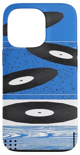 Disques vinyles flottants rétro Bleu Minimaliste Art Coque pour iPhone 16 Pro