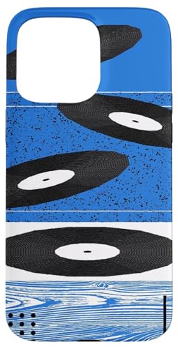 Disques vinyles flottants rétro Bleu Minimaliste Art Coque pour iPhone 15 Pro Max