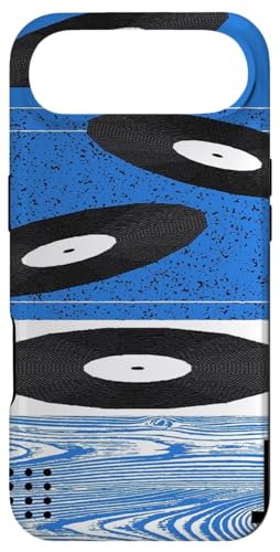 Disques vinyles flottants rétro Bleu Minimaliste Art Coque pour iPhone 17 Pro Max