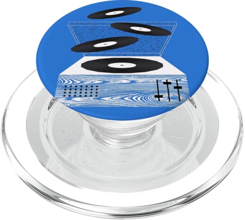 Disques vinyles flottants rétro Bleu Minimaliste Art PopSockets PopGrip pour MagSafe