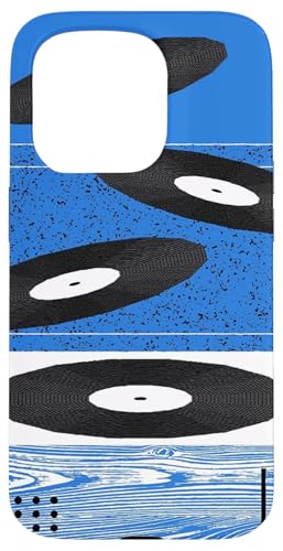 Disques vinyles flottants rétro Bleu Minimaliste Art Coque pour iPhone 15 Pro