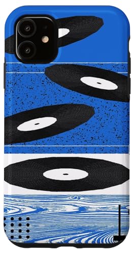 Disques vinyles flottants rétro Bleu Minimaliste Art Coque pour iPhone 11