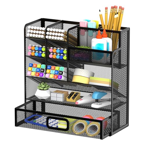 SUPEASY Métal Stylo/Porte-crayons, Organiseur de bureau avec tiroir, Multifonction Crayon Organisateur, Organisateur de bureau et Accessoires pour Office Art Supplies (Noir)