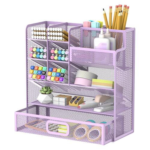 SUPEASY Stylo en métal/porte-crayons, organisateur de bureau avec tiroir, organisateur multifonctionnel crayon, organisateur de bureau et accessoires pour Office Art Supplies (Violet)