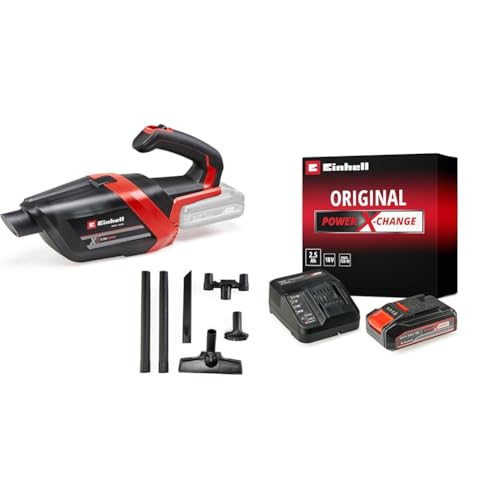 Einhell Aspirateur à main sans fil TE-VC 18 Li Solo -Système Power X-Change (Livré avec accessoires (Buse, buse à rainures...) avec Chargeur et Batterie 2,5Ah