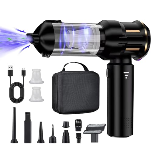 PORTENTUM 2 en 1 Mini Aspirateur à Main sans Fil 25 kPa – Batterie 10 000 mAh Jusqu’à 135 Min USB-C – Souffleur air comprimé 180 km/h brushless – Aspirateur Voiture à Vitesse réglable – Set de 11